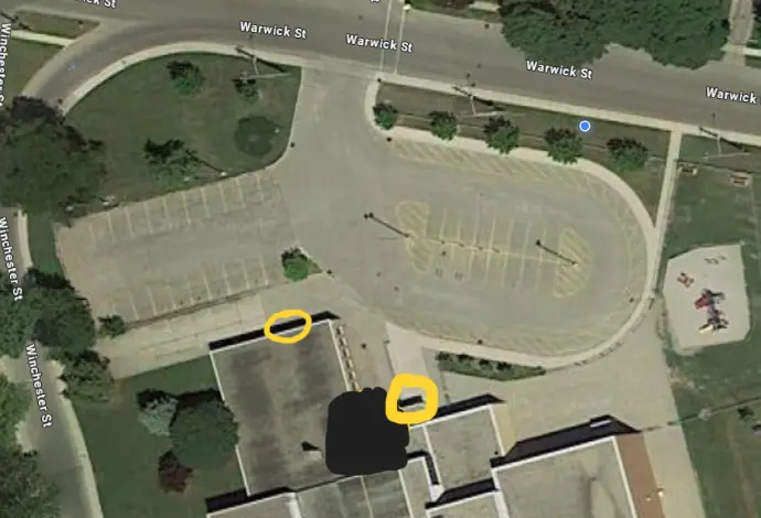 The front doors of the school will be open for access to the Carnival. Parking will be at the Warwick St. entrance and will also have access through the doors circled above.